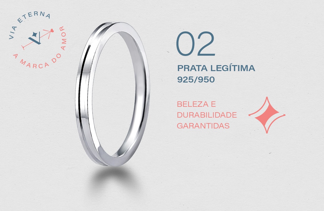 Dica Via Eterna: na nossa coleção de alianças em prata 925/950, você encontra opções para todos os estilos, com possibilidade de gravação interna personalizada para eternizar o seu momento.
