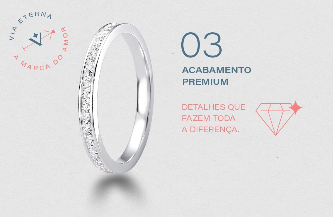 A pedra única revela o amor que é só de vocês. Um solitário Via Eterna é aquele detalhe que eterniza um momento em uma memória que brilha, deixando registrado que o amor de vocês vai ser vivido com todos os detalhes.