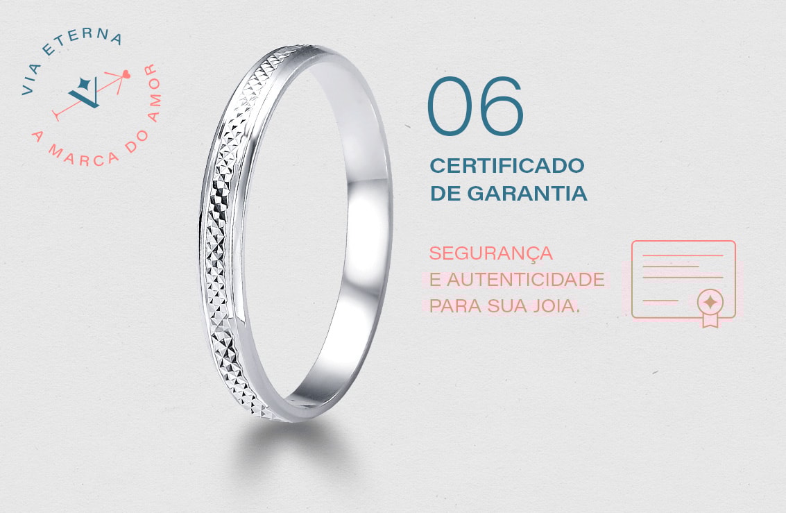 Na Via Eterna, você encontra mais de 20 modelos exclusivos de alianças em prata 925/950, perfeitos para marcar o início de uma nova história a dois. São opções para todos os estilos: lisa, com friso, trabalhada, diamantada, espelhada, com pedra, sem pedra ou toda cravejada. Estão disponíveis em diferentes espessuras 2mm, 2,5mm, 2,8mm, 3mm, 3,5mm, 4mm, 4,5mm e 5mm, garantindo o encaixe e o conforto ideais para cada casal. Todas as alianças podem ser personalizadas com gravação interna de até 18 caracteres, permitindo incluir nomes, datas, frases especiais e até um coração no início ou no final da mensagem. Cada aliança ou par acompanha certificado de garantia, embalagem especial e sacola exclusiva Via Eterna, para que o momento da entrega seja tão especial quanto o pedido.