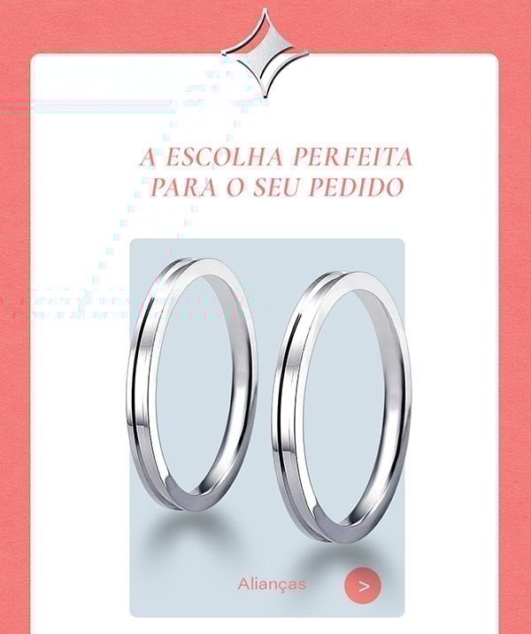 • Clássico: alianças lisas ou espelhadas, com design atemporal.
