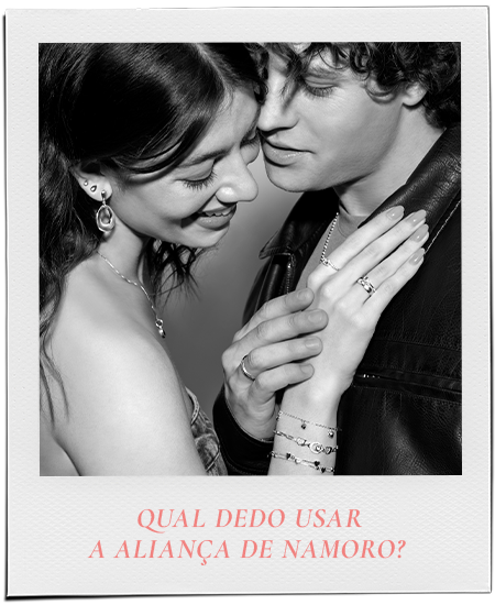 Essa é uma dúvida muito comum entre casais. A aliança de namoro ou aliança de compromisso é tradicionalmente usada no anelar da mão direita, simbolizando que o casal está em um relacionamento sério, mas ainda não é casado. Se o pedido incluir também um anel solitário em prata, ele pode ser usado à frente da aliança. Essa combinação é tendência e deixa o visual ainda mais especial para marcar o momento.